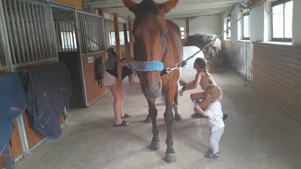 Mammas kompis Emilia tillsammans med sin lilla dotter Amanda hämtade oss efter kursen.  Eftersom mamma åkte till sjukhuset till pappa för att vara med honom åtminstone en stund efter jobbet, stannade vi hos Emilia fram till kvällen och lekte med Amanda. Emilia ordnade många roliga aktiviteter för oss – ridning, strandbesök, matlagning eller brädspel.